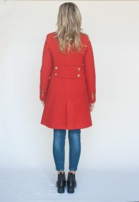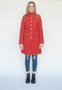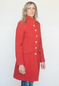 Vestibilità slim, lunghezza sopra al ginocchio, tasche con pattina, bottoni in cocco, collo alla coreana, martingala applicata con 4 bottoni, fine manica con bottoni.