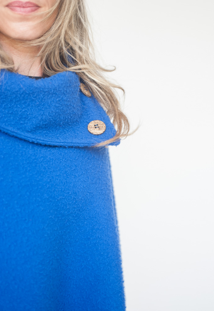 Collo apribile con bottoni in cocco, classico poncho adatto a tutte le occasioni.