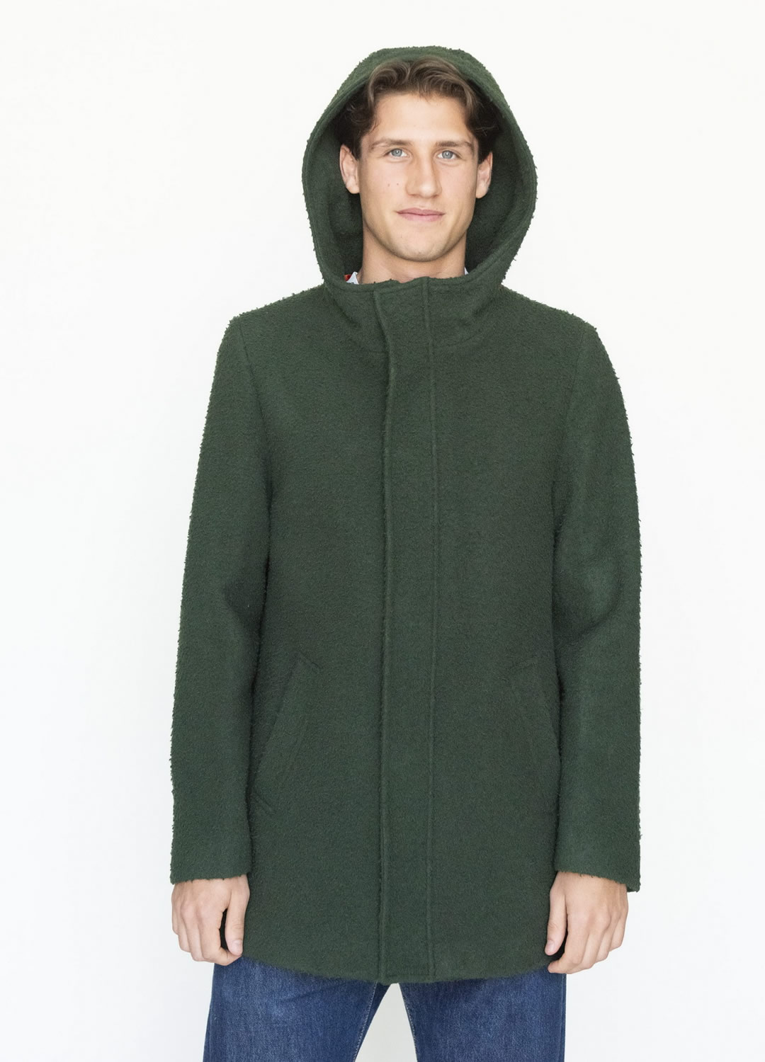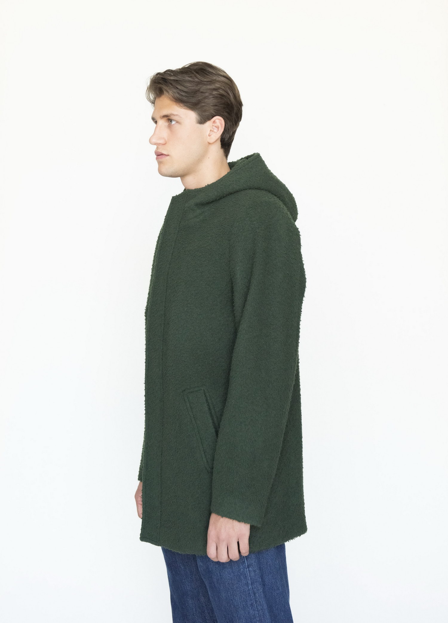 Giaccone uomo con cappuccio e zip a scomparsa.